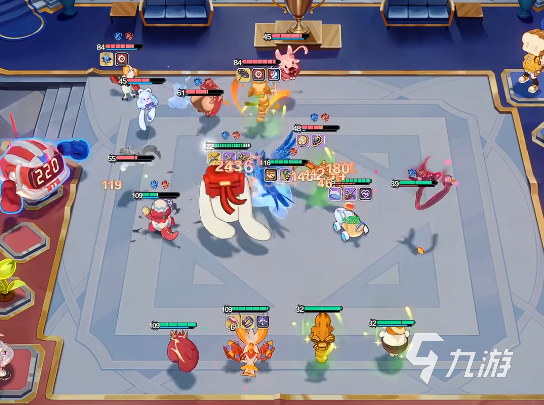 在实机演示中,还可以看到精灵们在战斗中的精彩表现,俯视角的自走棋棋盘,每只精灵都有独特的技能和攻击方式。绝大部分战斗内容是对局开始前的养成与搭配,开始后则有点电子斗蛐蛐的感觉,不需要太多的操作。