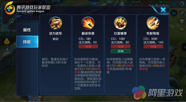 被动技能活力迸发能有效的减少孙尚香翻滚突袭的冷却时间,增加1技能的输出伤害。1技能翻滚突袭可以说是孙尚香的核心技能,玩好了分分钟成大神。无论是什么英雄在她面前,华丽的一滚,能拒敌于千里之外,然后依靠技能的普攻加成,回身反杀,翻滚突袭后的普攻强化效果对塔也有效哦。强拆塔时也请不要吝啬你的技能。2技能红莲爆弹是孙尚香的控制技能,依靠技能打出控制效果而不是依靠技能打出伤害,所以在团战时不要轻易施放,留在最后使用效果更佳,逃跑或追人都是必备。大招究极弩炮需要蓄力时间,对召唤师的预判意识要求较高,可以作为后手技能使用,不过伤害量不容小视,灵活运用该技能对敌方造成大量伤害,增加己方的团队优势,并且这个技能拥有比显示范围更远的射程的哦。