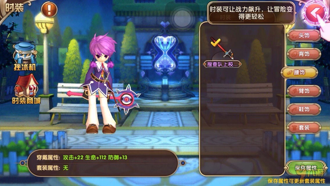 游戏拥有时装系统,时装是通过萌萌哒的“挫冰机”搞出来的,穿上时装可以增加属性。