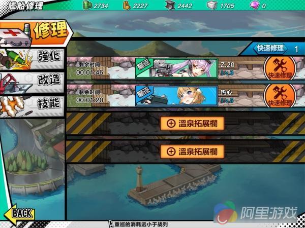 还有一个在其他卡牌游戏中不常见的玩法是,游戏还为舰娘设计了资源损耗计算系统,比如作战之前需要为每个舰娘补充燃料和弹药,而战后受伤的舰娘还需要消耗钢材等进行修理,所以几乎每进行一次战斗你就要花上一段时间来修船。各方面的资源限制导致玩家不是想战斗就能战斗的,你首先必须储存足够的资源来作为战斗补给。《钢铁少女》的这套资源消耗逻辑和 COC 等战争策略类游戏很相似,不过用在卡牌游戏中,就显得有点过于苛刻了,在游戏内聊天界面中甚至有玩家因为资源匮乏又无法快速补充而求官方开放充值,你们是想逼死0元党吗?