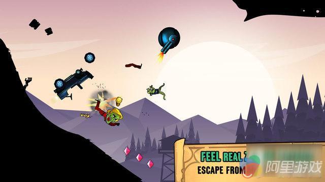 一般来说这类游戏重要的在于保持平衡,尽量不要翻跟头,这样平稳的一路到达终点就好了,但本作有些不太一样,它没有终点,而且平衡并不是最重要的。在前进的路上,玩家会遇到很多机枪,这些机枪会不断瞄准你并向你射击,直到把你打散架,如果你在游戏中因为调整不及时而摔倒,那并不会让你出局,但如果你一直遭受机枪的射击,那么你的生命会急剧下降,所以对准它们射击吧,这是你的战斗方式。