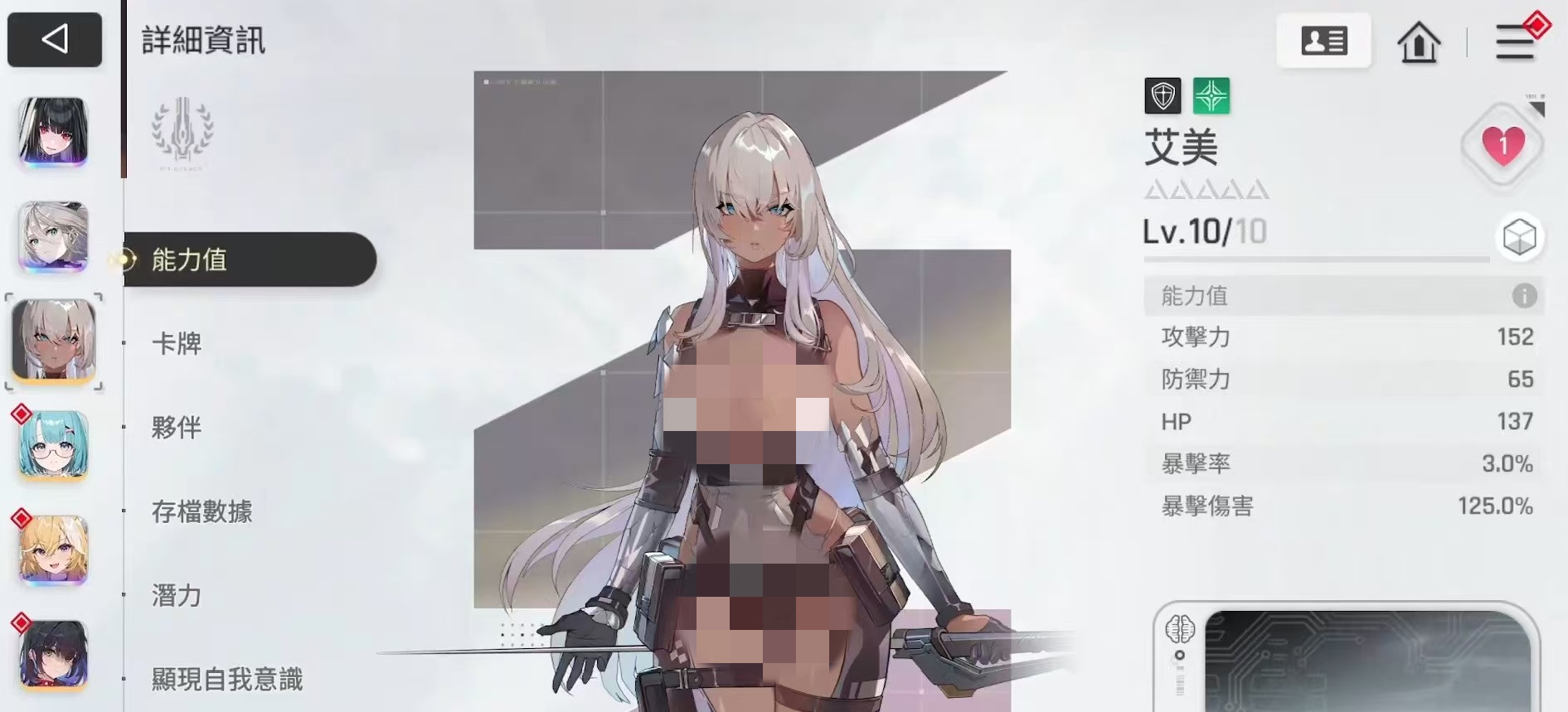 先来看一下这个角色的主要定位,艾美是属于游戏中的护盾体系,在团队中往往承担副c的定位,她的伤害和效果都基于自身的防御属性,在实战中往往需要和其他的护盾体系角色一起配合起来,才能发挥出最大作用。自我意识技能是钢铁信念,能按照金属化的数量获得护盾,在移除金属化后,下一回合开始,金属化状态变为三层。