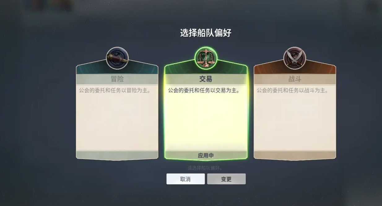 任命提督以后,大家要从贸易、战斗冒险三类方向中,挑选适合自己偏好的船队属性,确定后续的核心玩法,选定属性之后,游戏内的任务和公会委托都会跟着大家的偏好生成,会出现更多和属性匹配的委托任务,同时获取的经验值与名声也会因为属性的差异有所不同,属性选择可以挑战,但同样变更后需要等待24小时,才能再次进行。