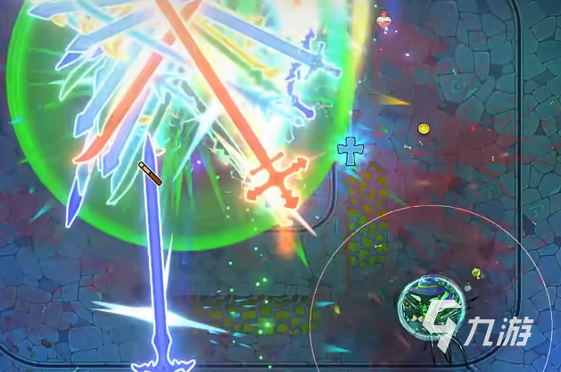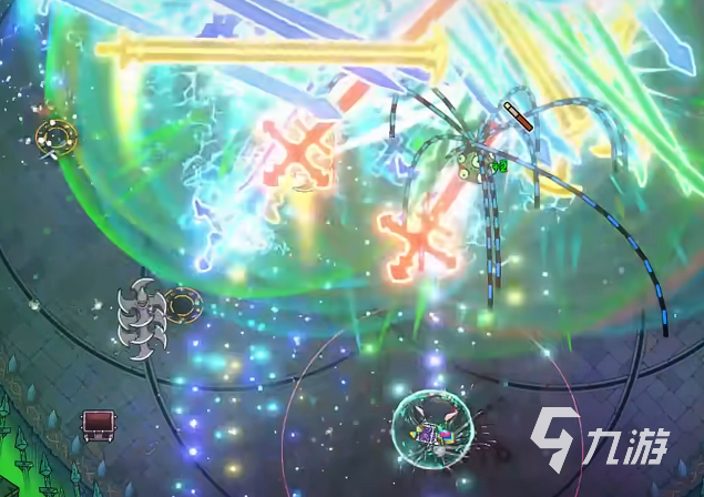 不过只有这些还不足够,接下来还有一个放大镜,玩家在拿到之后立马就会看到破魔剑的体型迅速的变化,很快就会成为一把巨剑。重点是一旦在变成巨剑之后,那效果就会直接提升100%,不管是打伤害还是抵挡弹幕都是比较给力的。等到巨剑成型之后,那最后一个关键自然就是补全配件。在这里也需要大家去使用分裂魔法,一次性就可以直接释放出好几把剑,然后加一些元素伤害,例如火属性,还有雷属性,可以迅速的提升输出的能力。