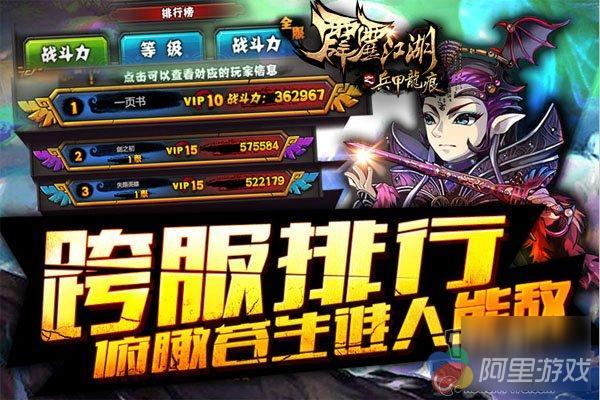 兵甲龙痕的故事中,雅狄王蝉联十一届四魌界武术魁首,是万众敬仰的英雄人物。此次全新版本中,全服战力排行榜也能让你名扬天下。全服战力排行榜,将所有服务器的高手收录其中,进行战力比拼。再加上传奇英雄的登场和装备升星这些全新玩法,高手们的战力也将突飞猛进,一场争夺全服战力排行榜榜首的较量,将愈演愈烈。