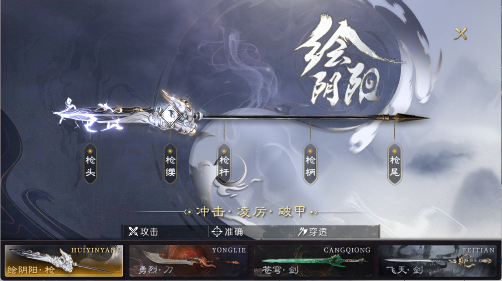 神兵现世,锋芒毕露,绘阴阳·枪,勇烈·刀,苍穹·剑,飞天·剑,收集神兵碎片破苍穹。