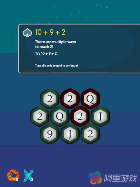 由于《JEX》并没有进行中文汉化,所以对于初次接触这款游戏且英文不行的玩家来说,确实很难理解它的玩法。《JEX》以21点的规则作为基础,不过却将扑克牌换成了像赌博“筹码“一样的六边形,这些六边形上数字的意思是与扑克牌完全一样的,其中:K、Q、J 和 10 牌都算作 10 点。A 牌既可算作1 点也可算作11 点,其余所有2 至9 牌均按其原面值计算,想要玩转本作就必须牢记住上面的基本规则。
