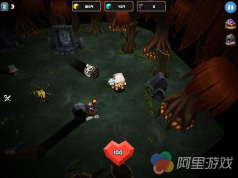 《方块先生的冒险之旅(Survive Mr. CUBE!)》采用了双摇杆的操作方式,玩家可以点击屏幕中的任何地方来进行操作,摇杆会随着你的手指而移动到相应位置,还是非常人性化的,其中左侧的摇杆用来控制角色的移动,右侧摇杆则用来控制攻击。不过兔子在试玩过程中发现,你在战斗时很难立刻将角色转到与敌人相对的方向,由此可见移动摇杆的灵敏度还需加强。