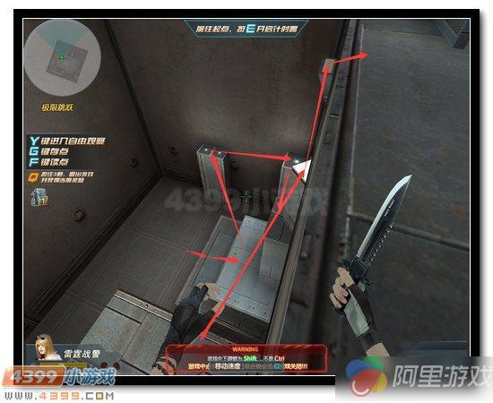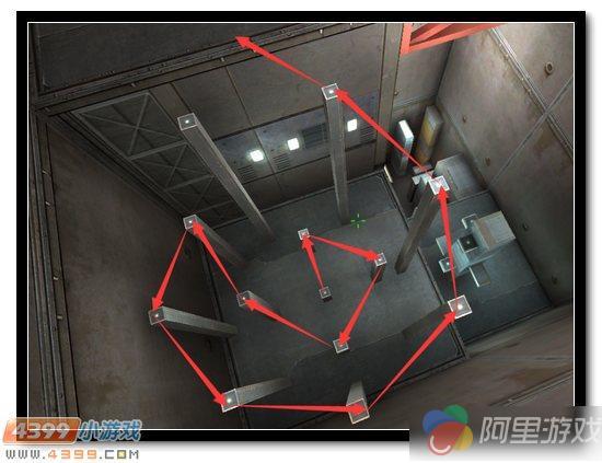 这一部分很绕,助跑空间也很小,所以很容易失足。仔细看路线,其实是一个环形的路线,比较容易记住。跑的时候小心一点,尽量别用连跳,因为连跳你根本把握不好距离很容易失足。