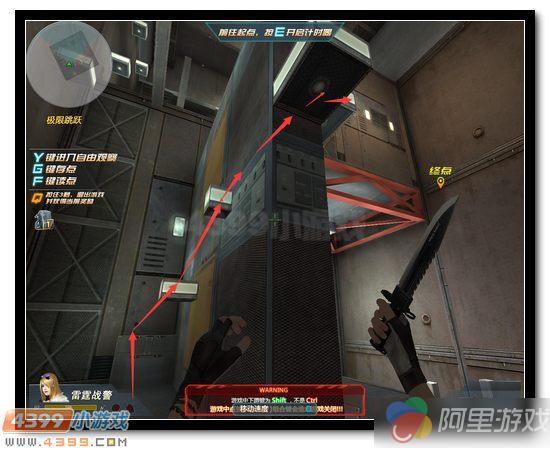 这一部分相对来说比较简单,完全可以用连跳一口气通过,不会连跳的用跳蹲也可以,只不过慢1-2秒。