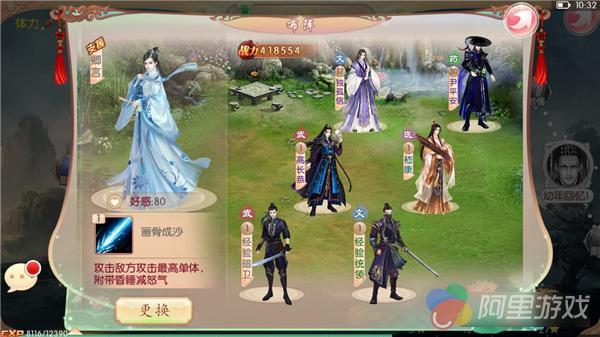 如果以一个大众向的游戏角度来看,《京门风月》的战斗系统显得非常单薄,然而这是一个专属女性向定制游戏,战斗并不是游戏的主题。在游戏中,玩家可以在招募到暗卫之后上阵迎敌,玩家最多可以一次性上阵六名暗卫以及一个支援者,暗卫的阵型在战前可以自行排布,而战斗之中玩家只需要注意暗卫怒气技能的施放时机即可,当然也可以选择自动战斗。