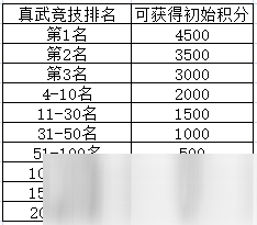 真武竞技还影响到了《神墓OL》中最盛大的真人实时竞技活动——封圣之战!真武竞技排名越高,报名封圣之战时获得的初始积分越高!具体的排名与积分数看下表: