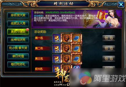 真武竞技的排名还可以在真武斗魂现活动界面领取奖励,每周统计一次竞技排行,竞技排行达到要求的玩家,将会获得专属排行大奖。统计时间截止为每周六的23:00,奖励周日可以领取。排名第一的最高可获得铜币*30万、玄石*35和技能领悟书*1!