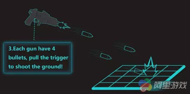 炸弹:按住手柄扳机,扔出去的时候松开扳机。一次炸毁对面一块地板。