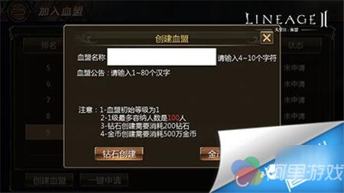 3、建立血盟:而血盟的创建需要一定的资金,也就是50W金币或者200钻。