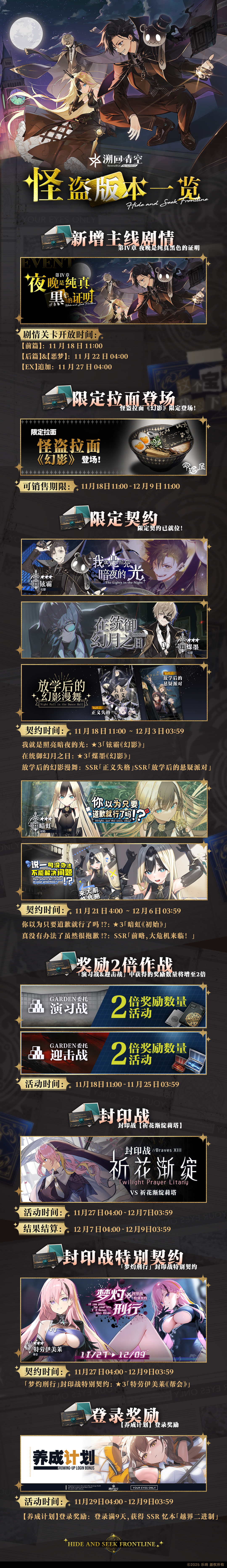 | 【怪盗版本预告】怪盗版本一览 ● 新增主线剧情 ● 限定拉面登场 ● 限定契约 ● 奖励2倍作战 ● 封印战 ● 封印战特别契约 ● 登录奖励