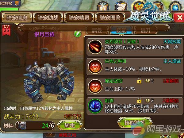 此外,银月巨猿的可洗炼技能也不容小觑。随着骑宠品阶的提升,骑宠的培养不再像以往那么简单了,英雄要做的就是收集更多的龙之精华升星材料,同时全方位的做到将骑宠加以提升,这样才能培养出更加厉害的骑宠哦。