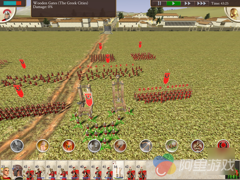 在发动了战争之后,玩家就会进入战场中,玩家可以清晰的看到地形的变化,游戏中的画面制作是非常精致的,玩家用两只手指即可进行视角的放大和缩小,玩家甚至可以看到每一名士兵手持的武器,这一点还是非常赞的。战争开始之前,将领会在军队中进行演讲鼓舞士气。当震长打响之后,玩家直接点击场景中的军队即可针对不同的兵种进行控制,当然玩家也可以通过下方的图标直接进行选择。选择之后再点击地方军队即可发起攻击,值得注意的是,不同的兵种攻击方式、行进速度等等都是不一样的,玩家需要根据战场上的情况随机应变才能获得最后的胜利。