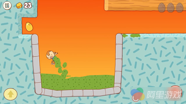 另外让人印象深刻的是游戏“违和”的画面和音效,为了更好的体验原汁原味的游戏,建议携带耳机体验。虽然采用了场景、人设萌系卡通风格的设计,但是是随处可见的呕吐物,却让感觉到游戏的重,其中有一个场景是主角掉进坑里,玩家需要利用呕吐物填满之后才能逃出来。而轻快的游戏背景音乐配合呕吐的音效让“违和感”倍增,这种艺术风格的游戏也没谁了。