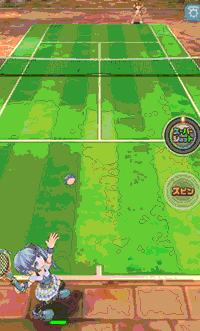 至于实际的玩法,Colopl典型的“ぷにコン”操作自然也没有缺席。不过《白猫网球》作为一款网球类游戏,其胜负的判定方式则依旧遵循传统的网球规则,但为了降低难度,还加入了许多提示性标志。其中最为突出的是,在角色身边会有一个小的框圈,只要对面回击而来的网球进入到范围之内,玩家只要轻轻一点就能轻松把球送回对面。当然在回击的瞬间,你也可以手动控制网球的飞行路线。