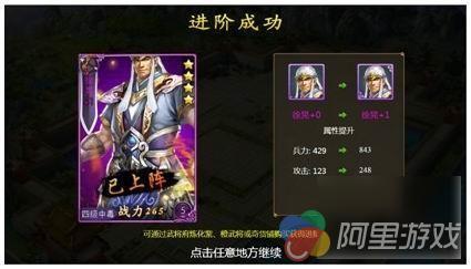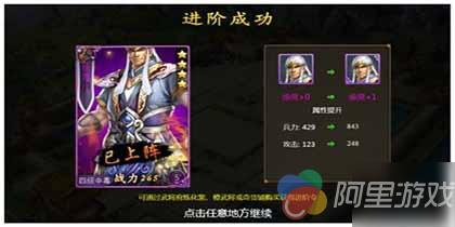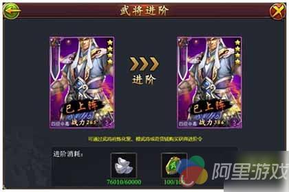 在游戏中紫色、橙色品质的武将都可以进行武将进阶,进阶后武将的属性将大幅提升。