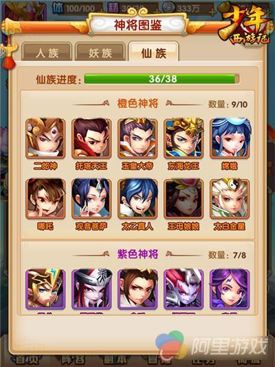 点击“图鉴”即可浏览仙人妖三族所有神将信息