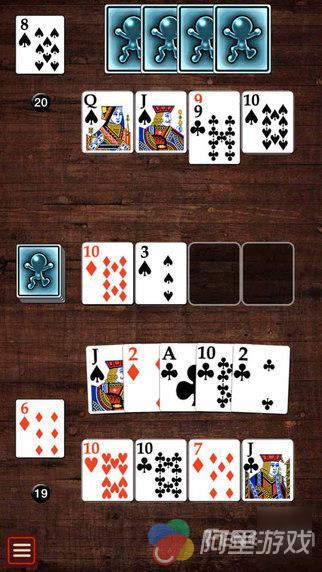 《Spite & Malice》是一款非常考验玩家耐心的纸牌游戏,游戏目的是最先把自己的 20 张牌“打”出去,每个回合你会得到 5 张牌,中间区域的牌可按顺序排列,每个回合你可以打出任意数量的牌,但如果将一张牌放置到底部的“舍弃牌”区域就宣告当前回合结束。