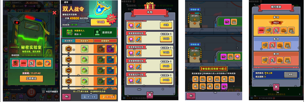 跨服组队玩法,根据积分排名赢稀有称号、神器、道具奖励,还能兑换商店高级道具