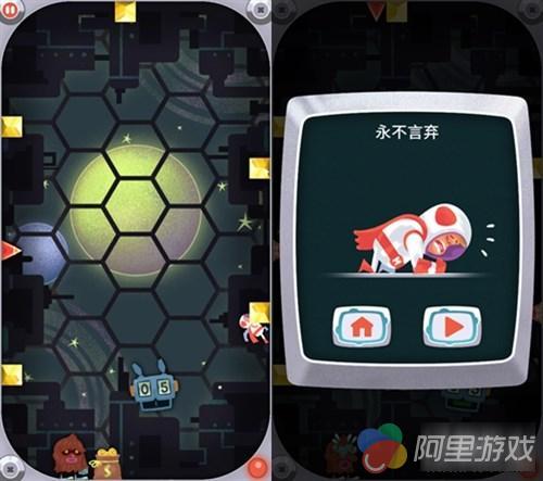 但接下来的难度,是我掰着脚趾都没有算到的——第一关都没过。第一关任务5圈,点击屏幕后,小宇航员开始向前跑(确切的说应该是向上跑),再次点击小人跳跃过障碍。看似简单,但只要稍微一不留神小宇航员就会撞在障碍物上GameOver。第一次,我就让小宇航员直接撞在了障碍物上,还没来得及反应。第二次,顺利越过第一道障碍,却不想卡在了第二道红色倒刺上。哎,一向机智的我怎么突然变笨了呢?没办法,为了能过关还得接着来。在历经十多次的N机之后,我终于可以很流畅地跑完前两圈,但每次在第三圈时,都会在跃过3点位置时,或跃过后,出现啪、砰、啊等会让我异常暴躁的声音,从而分心失败!(此处省略数万字的吐槽........)
