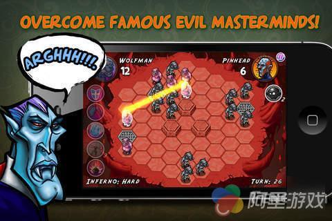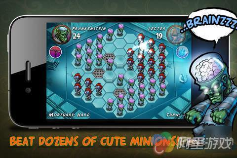 《Zombie Quest》是一款经典模式的六角棋盘策略游戏,游戏的对立三方是吸血鬼、狼人与僵尸,不过随着关卡的展开,会有更多的僵尸、狼人与吸血鬼让你选择。游戏在六角棋盘在进行,每一个吸血鬼、狼人与僵尸都有自己的移动范围,当你移动到敌人旁边时,就等于吃掉对方,让它变成你的人,以此类推,留在战场上的一方人数多的为胜者。