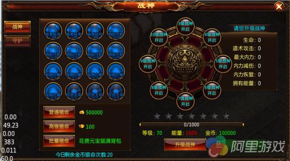 战神系统提供的属性加成包括生命值、攻击力、内力值、内力减伤和内力恢复。其中内力的设定是全新的属性类型,内力值其实是抵消玩家受到的伤害的能量,内力减伤指抵消伤害的百分比,内力恢复则是内力的恢复效率。战神系统还守护系统有紧密的联系。战神系统等级越高,才就能穿上更加高级的守护备。