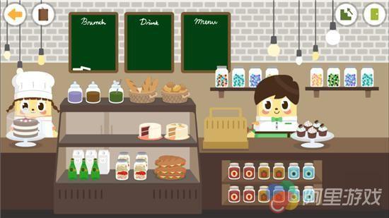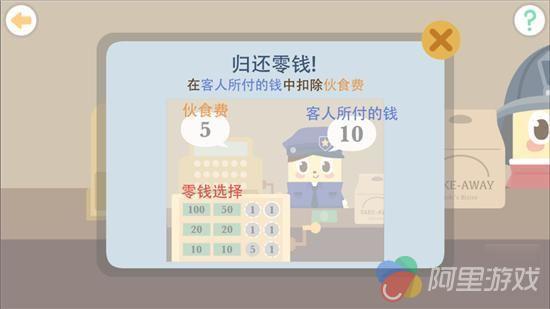 初来乍到并不会有什么冗长的引导,只要你推开美食店的门,接下来要做什么就随意了。这个美食店分为两层,一楼是售卖各种蛋糕、饼干等食品,二楼则是厨房,在一楼我们可以任意对心仪的蛋糕进行搭配,也可以主动地点击收银台,当一回收银员,这里就涉及到计算了,还好系统会有提示,让小朋友知道什么是找零,该如何计算什么的,这一点确实值得点赞。