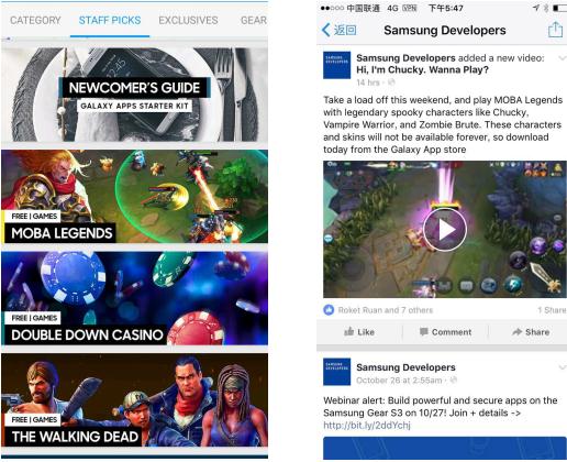 Kick9作为国内手游出海的先行者,在成立初期就在硅谷建立了优秀的本土市场及商务团队。在与App Store和Google Play建立了长期稳定的合作关系后,Kick9又拓展了以三星为代表的手机自有平台和以Playphone为代表的移动运营商平台。这次在获得苹果和谷歌的双平台推荐的同时,《MOBA Legends》也成功获得了三星手机商店,Galaxy App的首页大Banner推荐。同时,三星还配合在官方Facebook、Twitter主页进行宣传,短短几天内即带来数万新用户下载。