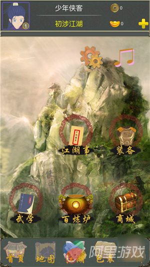 作为一个 RPG,游戏的各项系统也很完备,有奇遇,有武器装备系统,有武学(技能)系统,装备铸造系统(百炼炉),还有伙伴系统,可谓麻雀虽小五脏俱全。