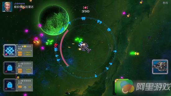 游戏中我们是作为指挥官身份存在的,所以射击战斗过程是不需要我们操控的,我们只需要控制好飞机的航向即可,所以玩家们用手指点击屏幕中的空白位置即可控制战舰飞行方向,瞄准与射击则完全由系统自动完成。游戏的操作方式非常简单,不过由于太空中转向会比较缓慢,所以玩家们在追击敌人以及躲避伤害的时候需要提前预判一些。