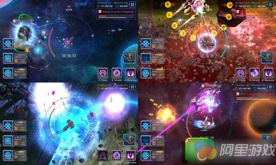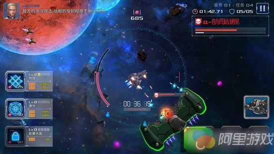 游戏中我们除了在开局之前对战舰进行强化升级以及选择合适的装备武器之外,在战斗中也同样可以对战舰属性进行升级,玩家们只需要点击屏幕左边的属性按钮,就可以消耗水晶来增加物理攻击或者激光攻击,在屏幕右下角还有各种强大的技能,在遇到突发事件或者被敌军重重包围的时候,可以使用技能轻松消灭所有敌人。游戏加入了战斗强化以及特殊技能,让战斗变得更加轻松一些。