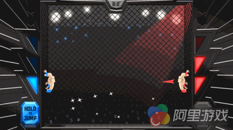 《终极格斗兄弟(UFB)》的玩法非常简单,玩家即可以选择单人游戏,也可以与你的好基友在闲暇之余来上一场,游戏共分为红方和蓝方两种人物可以选择,如果是单人模式下,玩家可以在两方之间自由选择,就看玩家喜欢的持握方式了。该作的战斗方式有些像《泡泡龙》,玩家按住屏幕中唯一一个按键来控制人物的控制跳跃的方向,如果抓住对手并将他放倒在地就算游戏的胜利,操作起来非常的简单。