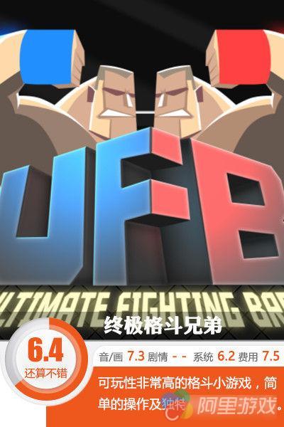 总的来说,《终极格斗兄弟(UFB)》是一款可玩性非常高的格斗游戏,游戏没有繁琐的技巧和操作,但玩起来却乐趣十足,十分适合两个人一起游戏,感兴趣的玩家赶快下载体验一下吧。评测室认为该作还算不错。
