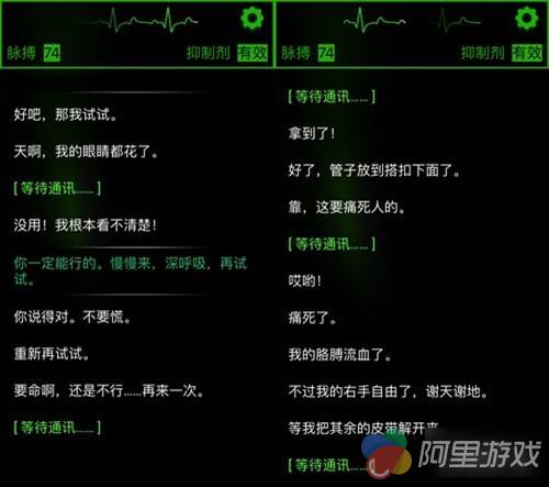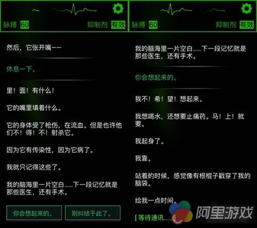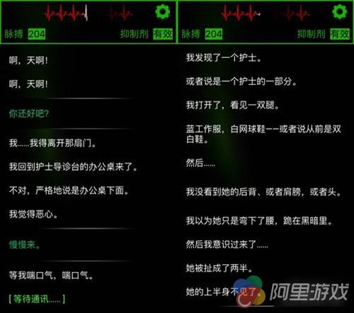 进入游戏后,依然是让你选择:单次接收、还是合并接收消息?小编毫无犹豫地选择了单次接收。游戏故事背景设置在一栋神秘的科研大楼的深处,一个名叫薇恩的女人从病床上苏醒,醒来之后她发现自己是被绑在病床上的,对于自己为什么来到这里薇恩已经一无所知,而她现在想要做的就是逃出这个可怕的地方,而唯一能和薇恩联系的人就只有你。这个情节设定和《生化危机2》中爱丽丝被关在医院里逃出的情节有些像,只不过逃生过程被无限拉长了而已,或许本作就是受电影启发而获得的灵感也说不定!