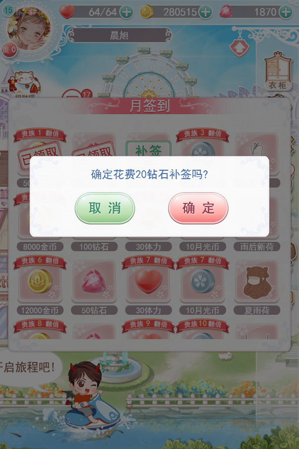 当然,如果某天忘记了签到了,还可以补签挽救的。但官官还是提醒大家,补签是消耗的钻石,而且消耗数量随着补签次数增加的。为了拯救你的钻石,还是记得签到吧。