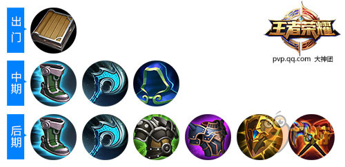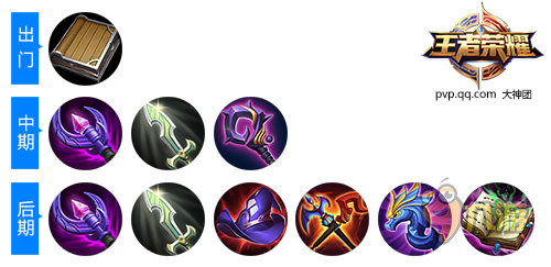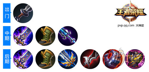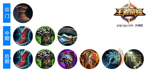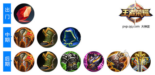 后期装:冷静之靴、振兴之凯、霸者重装、红莲斗篷、冰霜法杖、金色圣剑