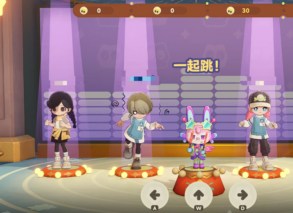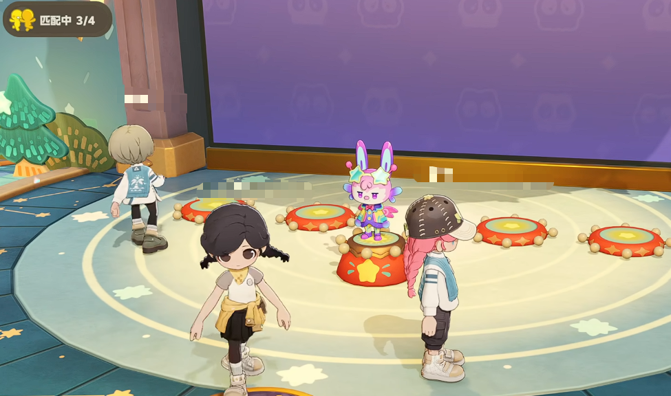 首先玩家们需要来到星空集市,集市内热闹非凡,各类活动区域分布清晰。在集市里面有一个类似大屏幕一样地方,屏幕上会滚动显示当前跳舞活动的参与人数和倒计时,而在中间有一个兔子npc,她穿着色彩鲜艳的舞蹈服饰,手持发光的指挥棒。
