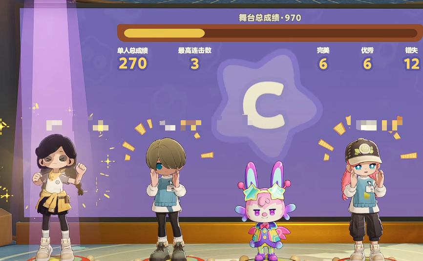 一旦出现慢了或者是动作出错的话,不仅会扣除当前分数,还会中断连击效果,那么对于比分的影响还是很大的。跳舞过程中,屏幕两侧会显示其他玩家的实时分数和动作完成度,方便玩家了解自身排名情况。