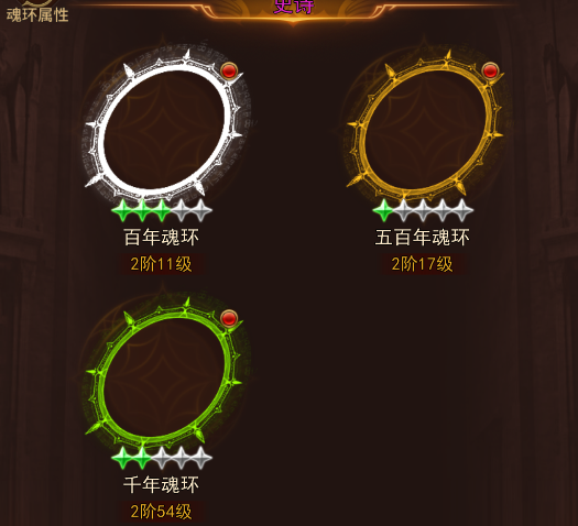 当玩家需要突破提升战力时,传说级魂环提供了质的飞跃。其提供的属性和战力提升远超史诗魂环。包含:五千年魂环/万年魂环/五万年魂环
