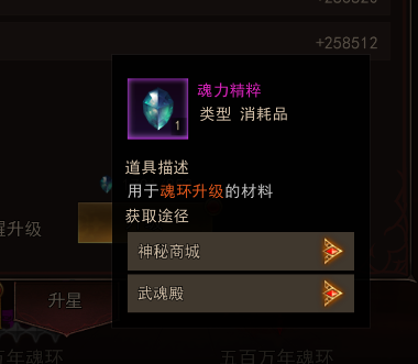 核心消耗材料: 进行升星操作需要消耗相对应年份的魂环书(例如:为万年魂环升星,需要消耗万年魂环书)。