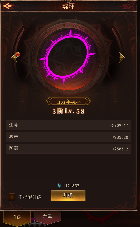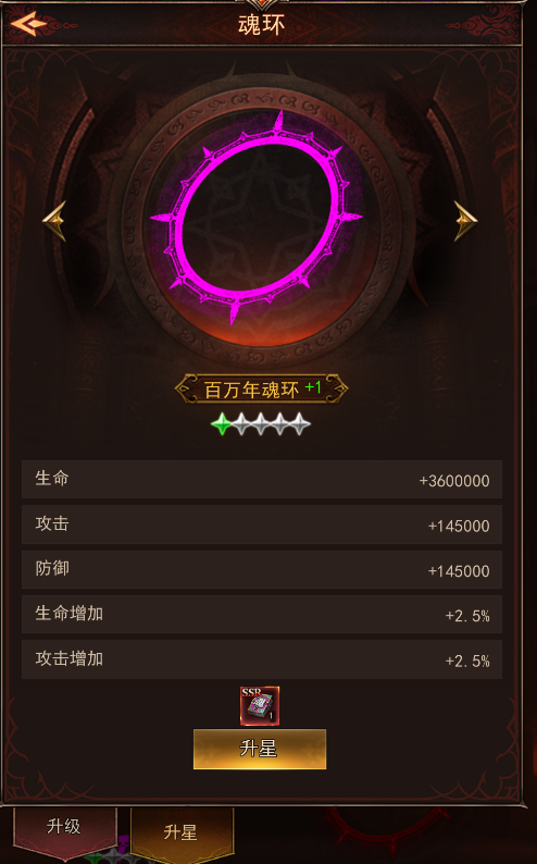 机制: 魂环升星是突破魂环固有潜力的核心操作。升星主要大幅强化魂环提供的百分比类特殊属性(即“生命增加%”、“攻击增加%”、“防御增加%”)。这是中后期角色属性实现几何级增长的核心驱动力。