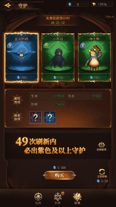 • 免费刷新:每6小时可免费刷新一次守护池,刷新后将重置当前可召唤的守护列表,记得定时上线刷新,不浪费免费机会;