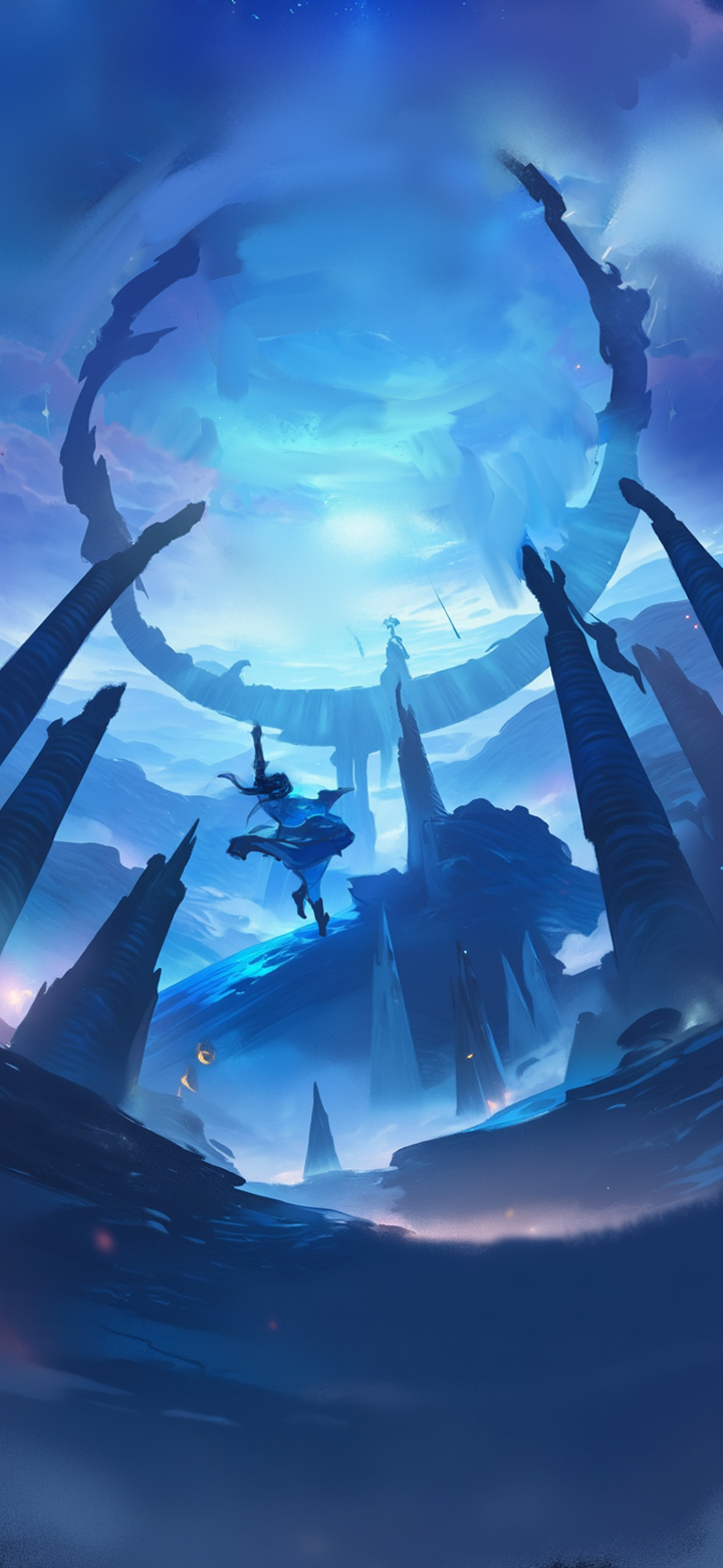 这是预示之力显示的最后一幅场景:永夜苍穹下,青衣少年悬于虚空,一手高举长明灯,指向天际那抹微亮的光源,仿佛要以残烛之火点燃熄灭的太阳。看来这就是拯救此界的关键所在了,这青衣少年是谁?他为何能催动长明灯?