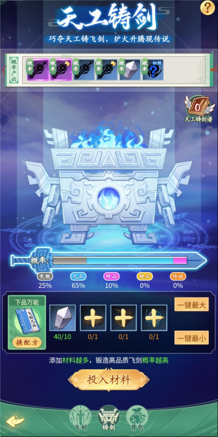 这个铸剑系统非常“人性化”,你可以自由选择投入多少材料(师父:嘿嘿,多投点,成功率更高哦~)。