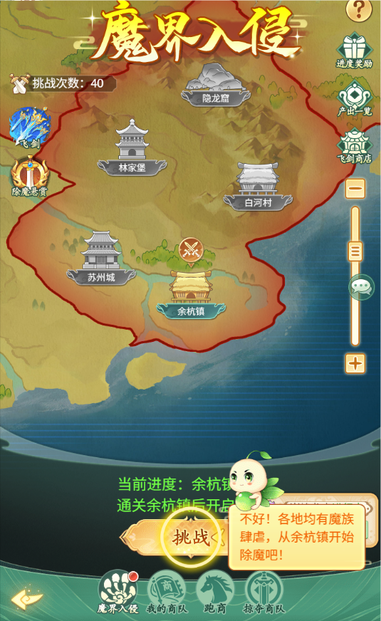 · 每日40次挑战机会,把魔族据点当成试剑石,并在魔界地图中赚取铸剑的材料。